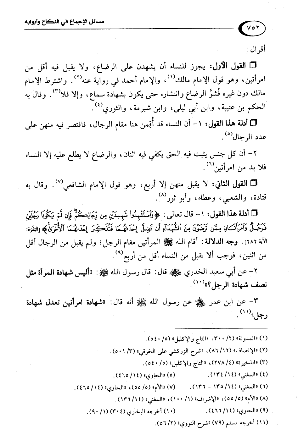 (¬8) "الأم" (5/ 55)، "الإشراف" (1/ 100)، "المغني" (14/ 136).