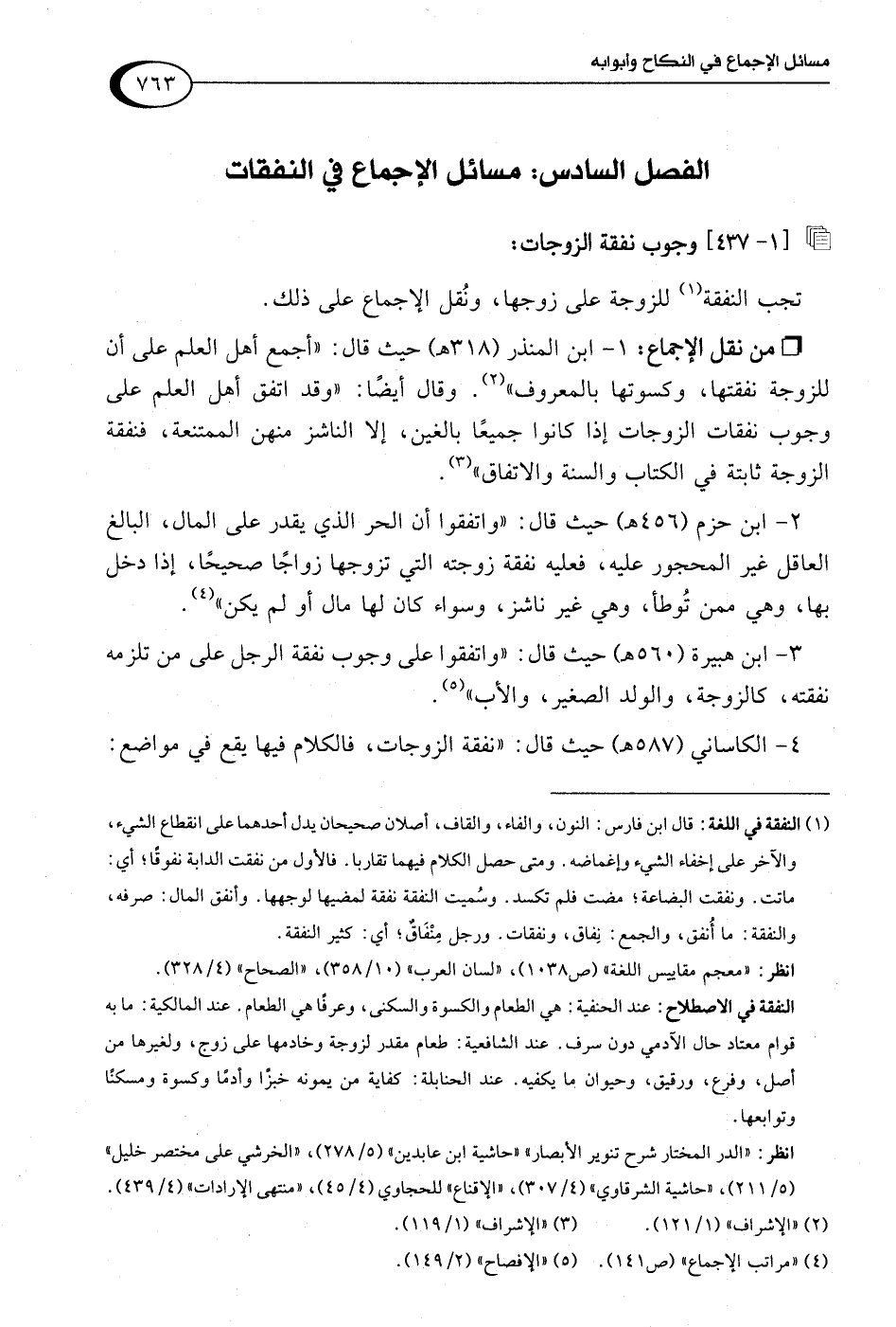 الفصل السادس: مسائل الإجماع في النفقات