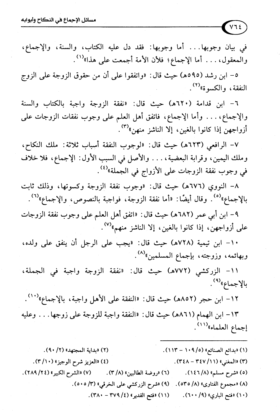 12 - ابن حجر (852 هـ) حيث قال: "النفقة على الأهل واجبة، بالإجماع" (¬10).