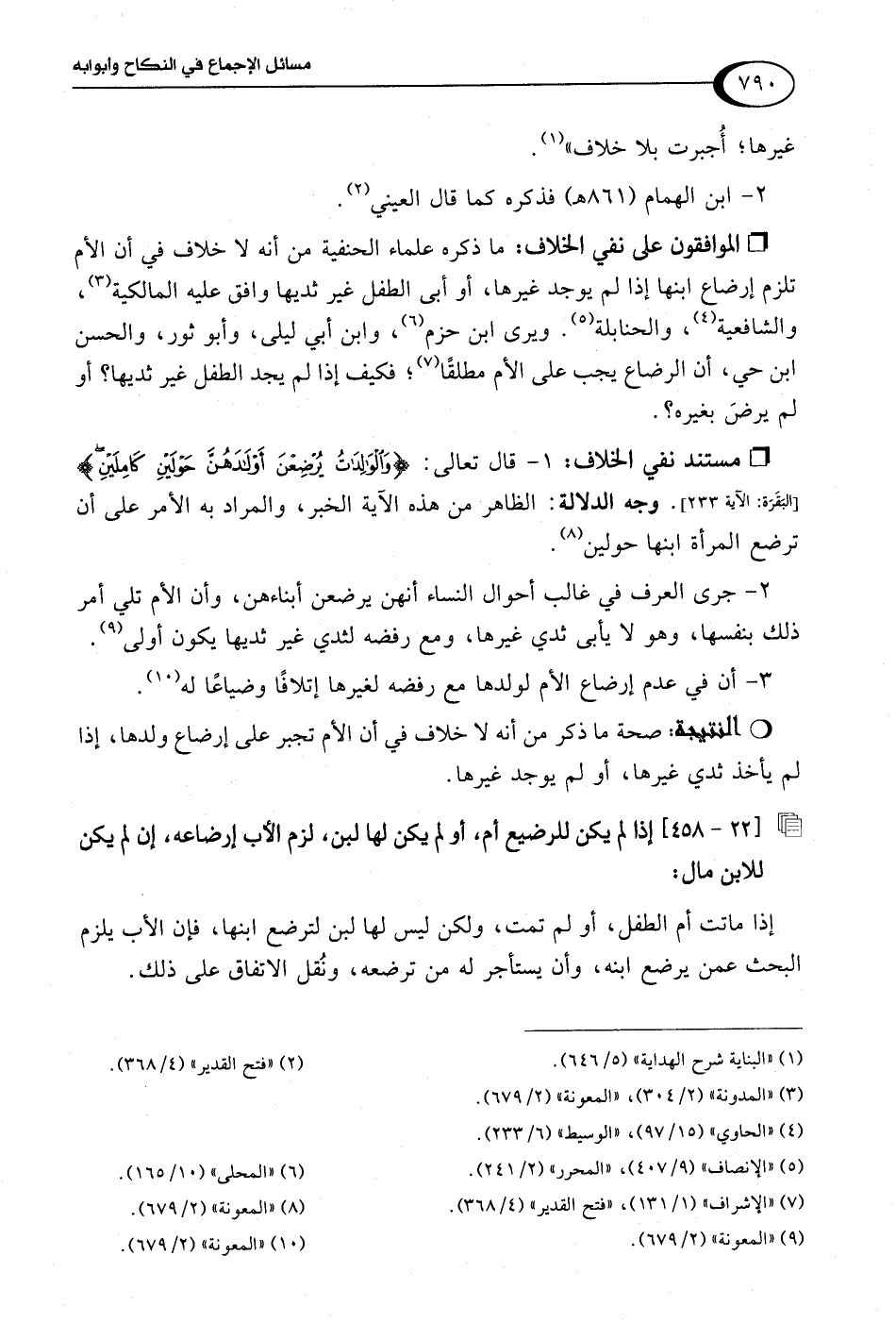 • الموافقون على نفي الخلاف: ما ذكره علماء الحنفية من أنه لا خلاف في أن الأم تلزم إرضاع ابنها إذا لم يوجد غيرها، أو أبى الطفل غير ثديها وافق عليه المالكية (¬3)، والشافعية (¬4)، والحنابلة (¬5). ويرى ابن حزم (¬6)، وابن أبي ليلى، وأبو ثور، والحسن ابن حي، أن الرضاع يجب على الأم مطلقًا (¬7)، فكيف إذا لم يجد الطفل غير ثديها؟ أو لم يرضَ بغيره؟ .