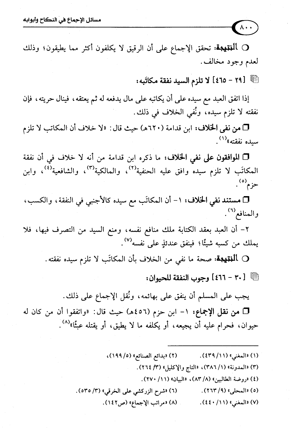 • الموافقون على نفي الخلاف: مما ذكره ابن قدامة من أنه لا خلاف في أن نفقة المكاتَب لا تلزم سيده وافق عليه الحنفية (¬2)، والمالكية (¬3)، والشافعية (¬4)، وابن حزم (¬5).