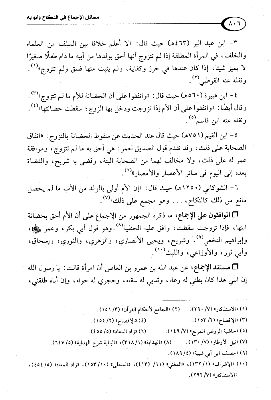(¬10) "الإشراف" (1/ 132)، "المغني" (11/ (413)، "المحلى" (10/ 153)، "زاد المعاد" (5/ 454)، "الاستذكار" (7/ 292).