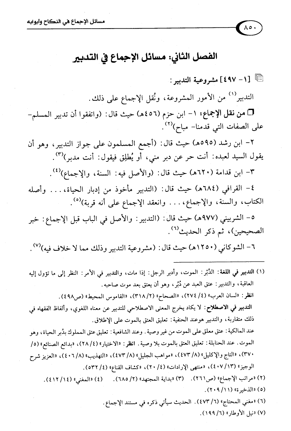 1 - ابن حزم (456 هـ) حيث قال: (واتفقوا أن تدبير المسلم -على الصفات التي قدمنا- مباح) (¬2).