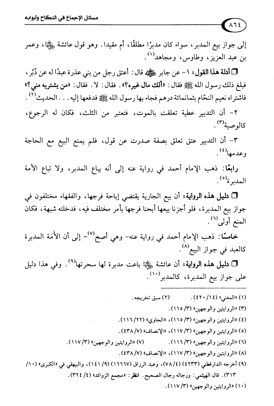 رابعًا: ذهب الإمام أحمد في رواية عنه إلى أنه يباع المدبر، ولا تباع الأمة المدبرة (¬5).