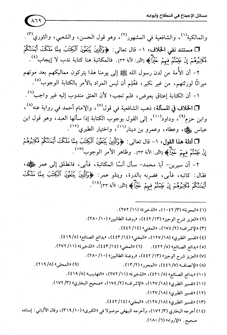1 - قال تعالى: {وَالَّذِينَ يَبْتَغُونَ الْكِتَابَ مِمَّا مَلَكَتْ أَيْمَانُكُمْ فَكَاتِبُوهُمْ إِنْ عَلِمْتُمْ فِيهِمْ خَيْرًا} [النور: 33]. وظاهر الأمر الوجوب (¬13).