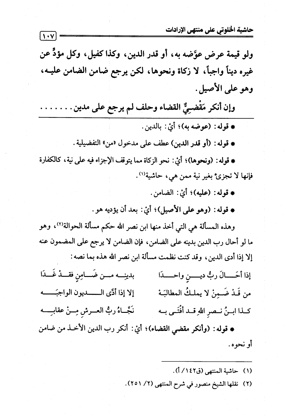 (¬1) حاشية المنتهى (ق 142/ أ).