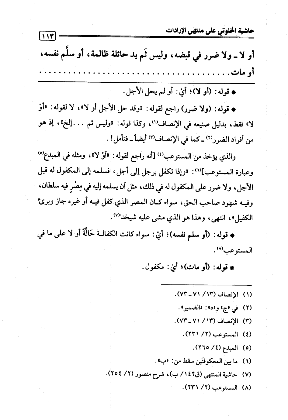 (¬7) حاشية المنتهى (ق 142/ ب)، شرح منصور (2/ 254).