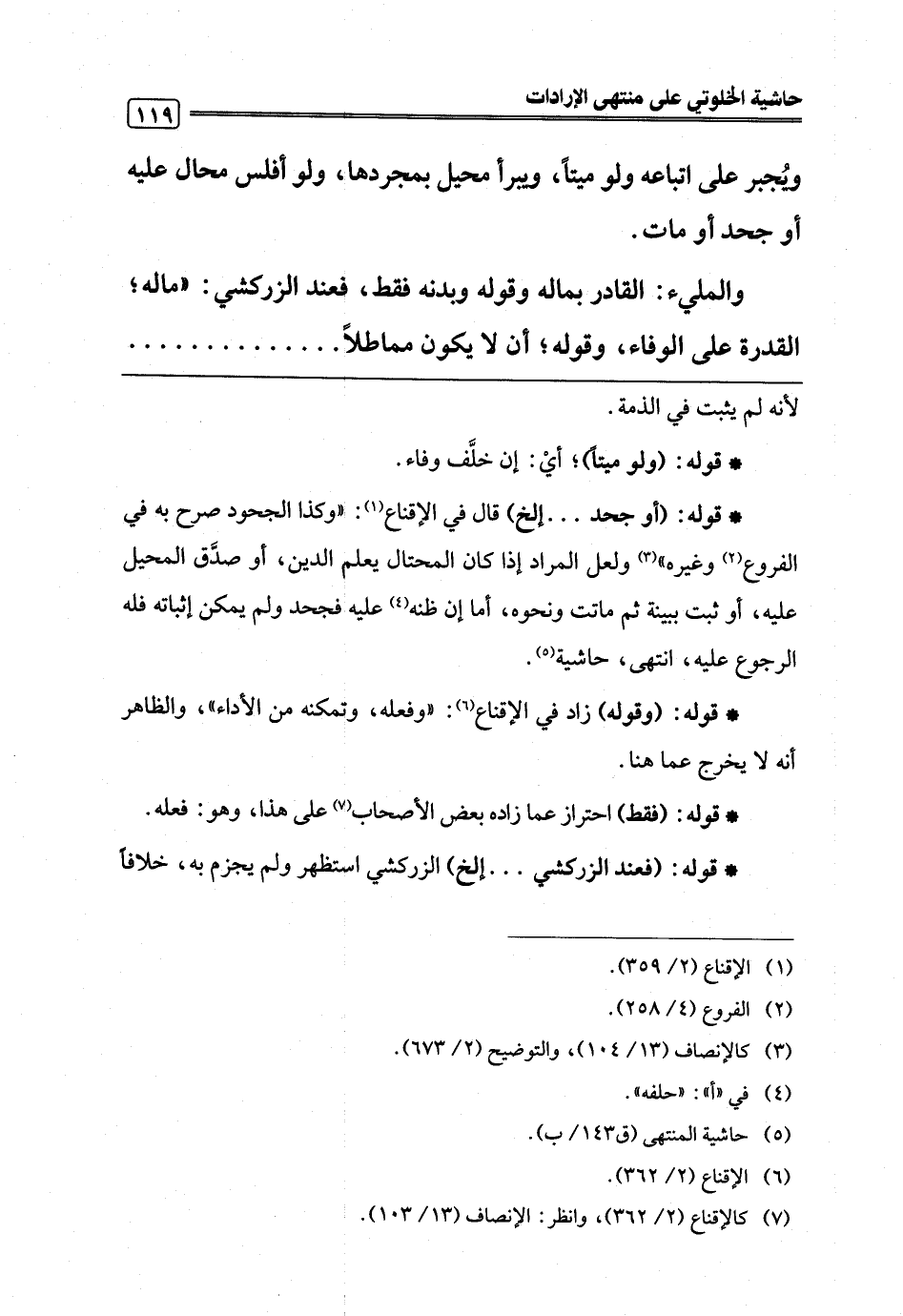 (¬5) حاشية المنتهى (ق 143/ ب).