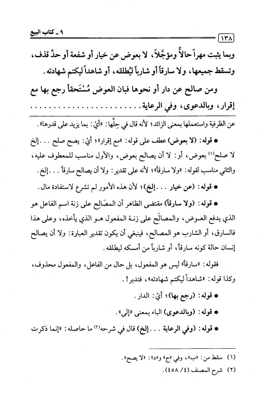* قوله: (لا بعوض) عطف على قوله: "مع إقرار"؛ أيْ: يصح صلح. . . إلخ لا صلح (¬1) بعوض، أو: لا أن يصالح بعوض، والأول مناسب للمعطوف عليه، والثاني مناسب لقوله: "ولا سارقًا"؛ لأنه على تقدير: ولا أن يصالح سارقًا. . . إلخ.