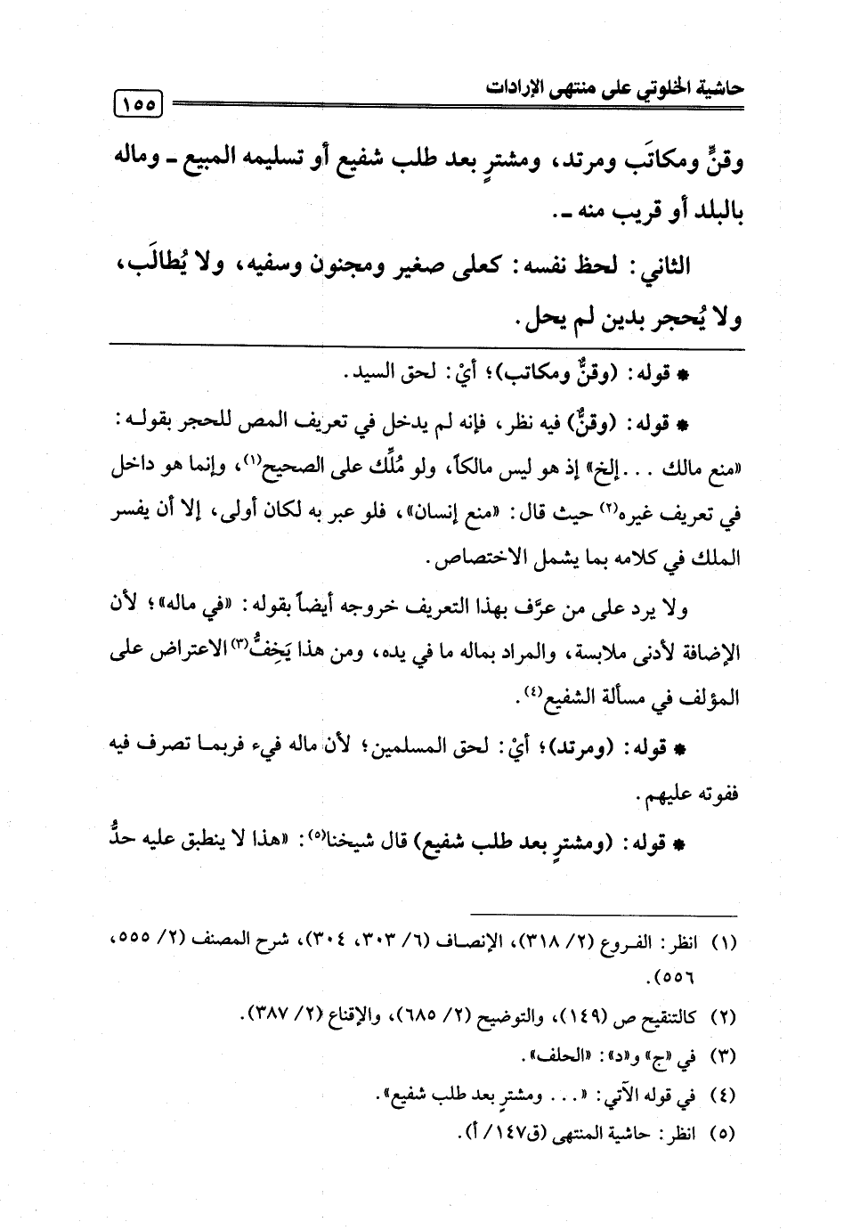 (¬5) انظر: حاشية المنتهى (ق 147/ أ).
