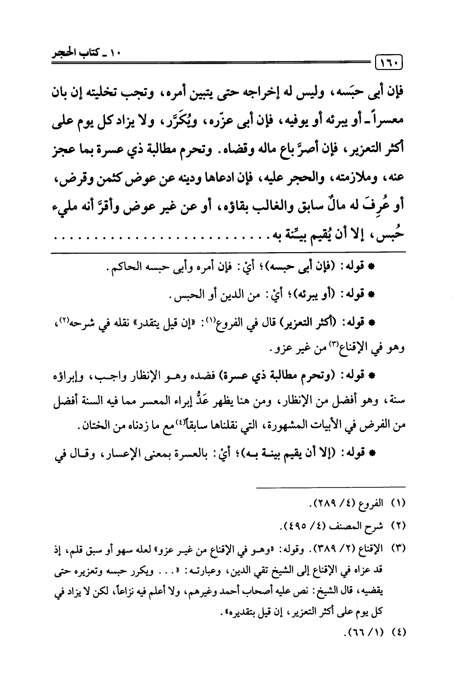 (¬3) الإقناع (2/ 389). وقوله: "وهو في الإقناع من غير عزو" لعله سهو أو سبق قلم، إذ قد عزاه في الإقناع إلى الشيخ تقي الدين، وعبارته: ". . . ويكرر حبسه وتعزيره حتى يقضيه، قال الشيخ: نص عليه أصحاب أحمد وغيرهم، ولا أعلم فيه نزاعًا، لكن لا يزاد في كل يوم على أكثر التعزير، إن قيل بتقديره".