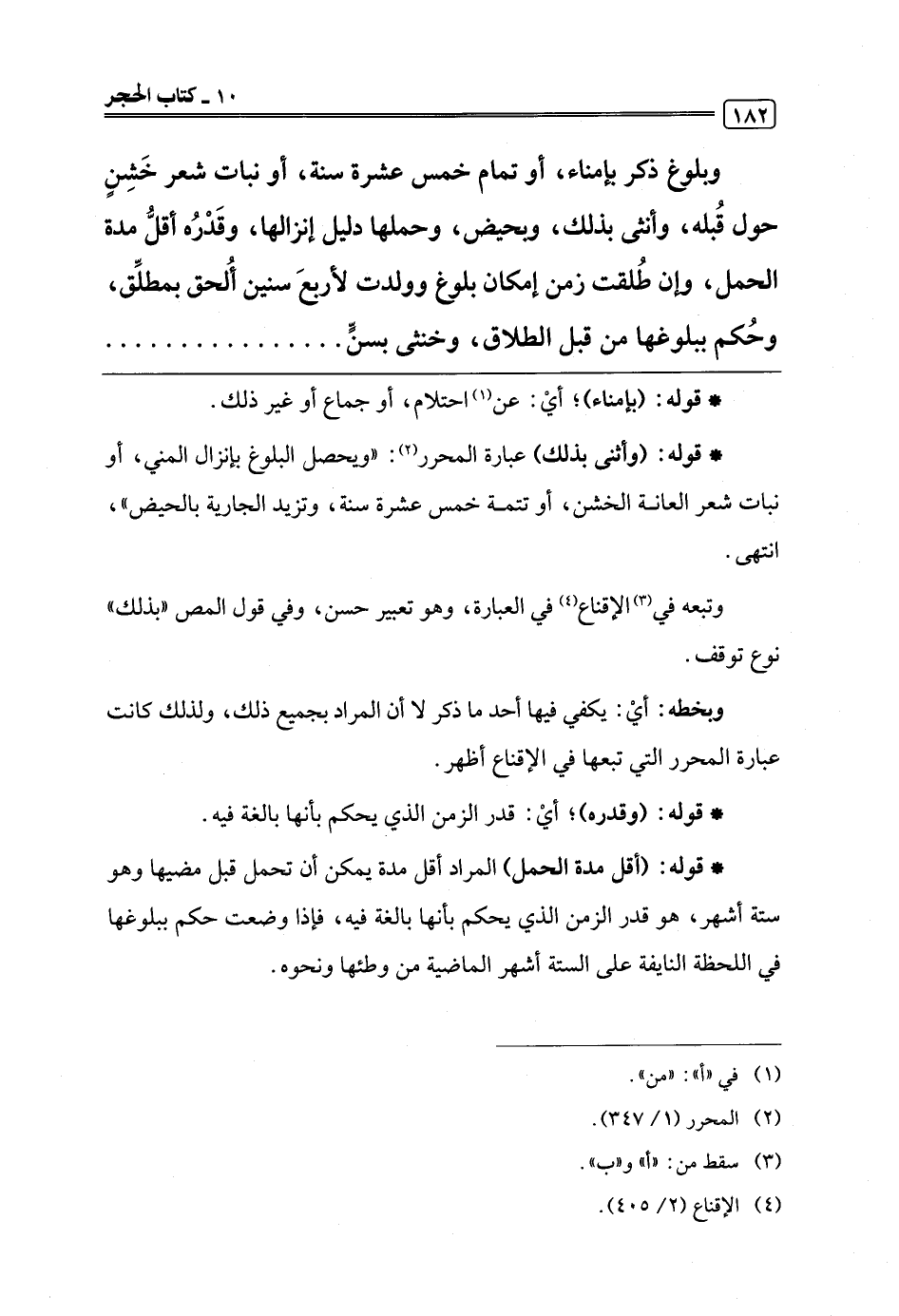 * قوله: (وأثنى بذلك) عبارة المحرر (¬2): "ويحصل البلوغ بإنزال المني، أو نبات شعر العانة الخشن، أو تتمة خمس عشرة سنة، وتزيد الجارية بالحيض"، انتهى.
