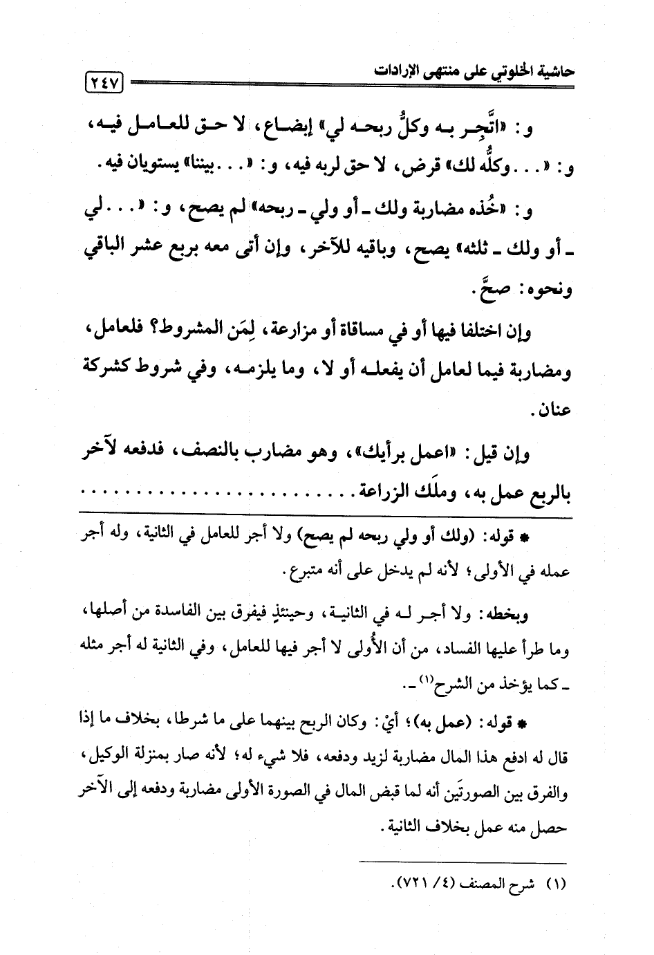 وبخطه: ولا أجر له في الثانية، وحينئذٍ فيفوق بين الفاسدة من أصلها، وما طرأ عليها الفساد، من أن الأُولى لا أجر فيها للعامل، وفي الثانية له أجر مثله -كما يؤخذ من الشرح (¬1) -.