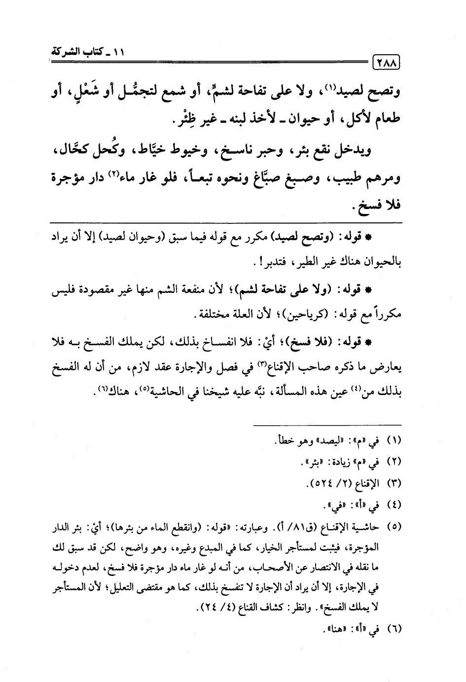 (¬5) حاشية الإقناع (ق 81/ أ). وعبارته: "قوله: (وانقطع الماء من بئرها)؛ أيْ: بئر الدار المؤجرة، فيثبت لمستأجر الخيار، كما في المبدع وغيره، وهو واضح، لكن قد سبق لك ما نقله في الانتصار عن الأصحاب، من أنه لو غار ماء دار مؤجرة فلا فسخ، لعدم دخوله في الإجارة، إلا أن يراد أن الإجارة لا تنفسخ بذلك، كما هو مقتضى التعليل؛ لأن المستأجر لا يملك الفسخ". وانظر: كشاف القناع (4/ 24).