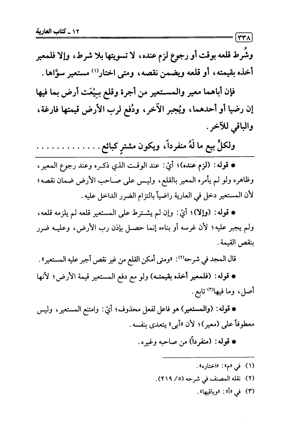 * قوله: (والمستعير) هو فاعل لفعل محذوف؛ أيْ: وامتنع المستعير، وليس معطوفًا على (معير)؛ لأن "أبى" يتعدى بنفسه.