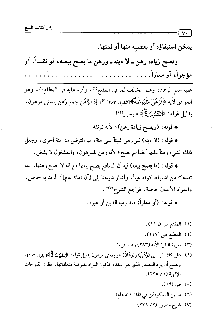 (¬4) على كلا القراءتَين (رُهُنٌ) و (رهَانٌ) هو بمعنى مرهون بدليل قوله: {مَقْبُوضَةٌ} [البقرة: 283]، ويصح أن يراد المصدر الذي هو العقد، فيكون المراد مقبوضة متعلقاتها. انظر: الفتوحات الإلهية (1/ 235).