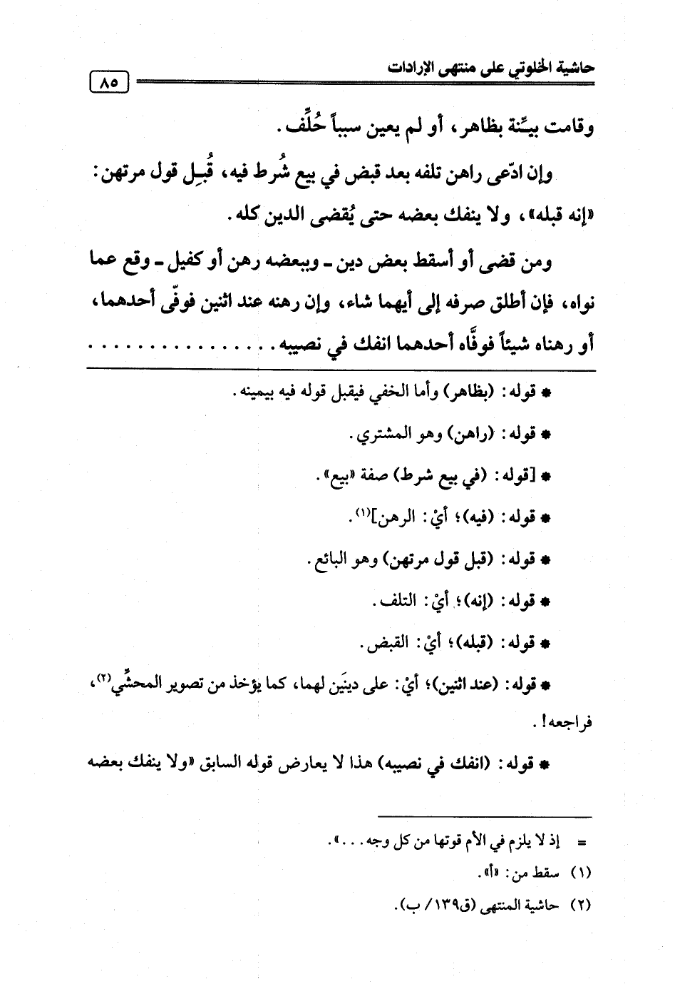 (¬2) حاشية المنتهى (ق 139/ ب).