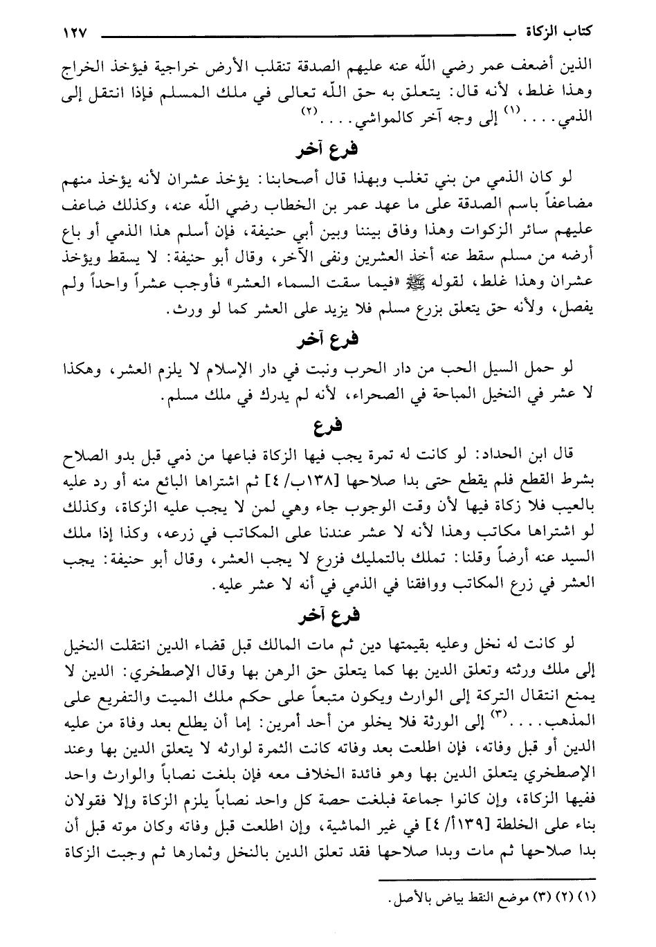 الذين أضعف عمر رضي الله عنه عليهم الصدقة تنقلب الأرض خراجية فيؤخذ الخراج وهذا غلط، لأنه قال: يتعلق به حق الله تعالى في ملك المسلم فإذا انتقل إلى الذمي ..... (¬1) إلى وجه آخر كالمواشي ...... (¬2)