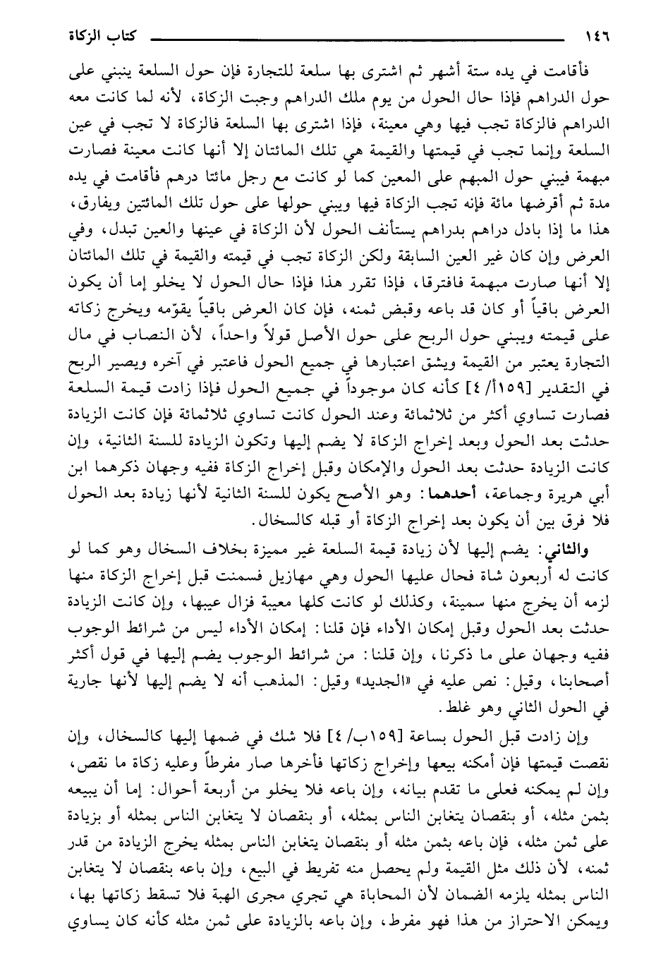 والثاني: يضم إليها لأن زيادةً قيمةَ السلعةً غير مميزة بخلاف السخال وهو كما لو كانت له أربعون شاةً فحال عليها الحول وهي مهازيل فسمنت قبل إخراج الزكاةً منها لؤمه أن يخرج منها سمينةً، وكذلك لو كانت كلها معيبةً فزال عيبها، وإن كانت الزيادةَ حدثت بعد الحول وقبل إمكان الأداء فإن قلنا: إمكان الأداء ليس من شرائط الوجوب ففيه وجهان على ما ذكرنا، وإن قلنا: من شرائط الوجوب يضم إليها في قول أكثر أصحابنا، وقيل: نص عليه في أو الجديدةً وقيل: المذهب أنه لا يضم إليها لأنها جاريةً في الحول الثاني وهو غلط.