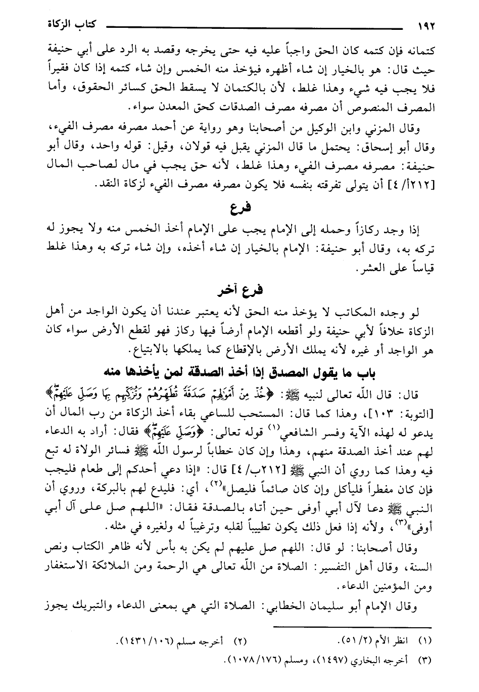 قال: قال الله تعالى لنبيه صلى الله عليه وسلم: {خُذْ مِنْ أَمْوَالِهِمْ صَدَقَةً تُطَهِّرُهُمْ وتُزَكِّيهِم بِهَا وصَلِّ عَلَيْهِمْ} [التوبة: 103]، وهذا كما قال: المستحب للساعي بقاء أخذ الزكاة من رب المال أن يدعو له لهذه الآية وفسر الشافعي (¬1) قوله تعالى: {وصَلِّ عَلَيْهِمْ} فقال: أراد به الدعاء لهم عند أخذ الصدقة منهم، وهذا وإن كان خطابًا لرسول الله صلى الله عليه وسلم فسائر الولاة له تبع فيه وهذا كما روي أن النبي صلى الله عليه وسلم [212 ب/4] قال: "إذا دعي أحدكم إلى طعام فليجب فإن كان مفطرًا فليأكل وإن كان صائمًا فليصل" (¬2)، أي: فليدع لهم بالبركة، وروي أن النبي صلى الله عليه وسلم دعا لآل أبي أوفي حين أتاه بالصدقة فقال: "اللهم صل على آل أبي أوفي" (¬3)، ولأنه إذا فعل يكون تطييبًا لقلبه وترغيبًا له ولغيره في مثله.