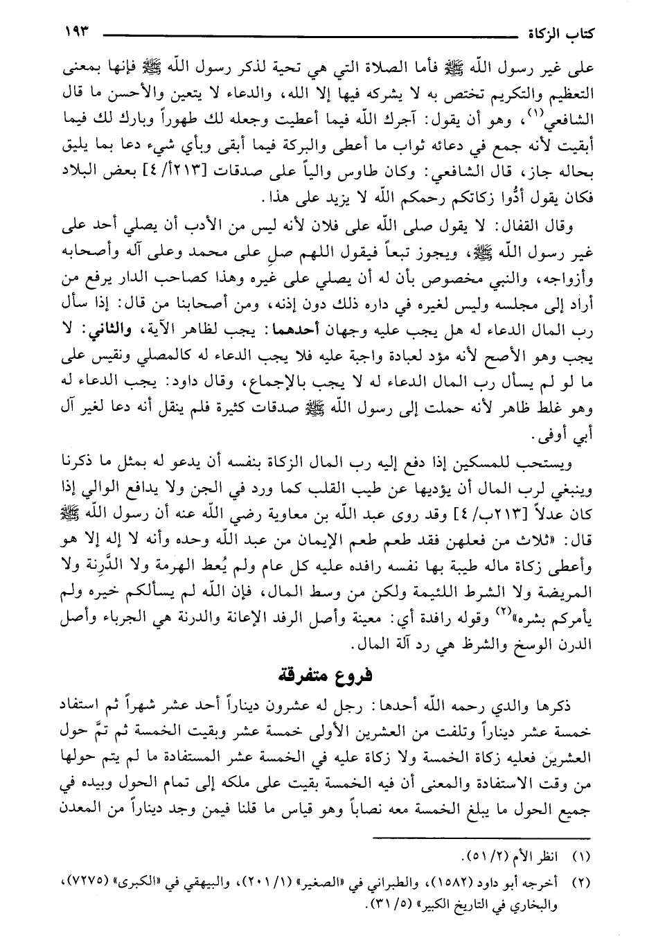 على غير رسول الله صلى الله عليه وسلم فأما الصلاة التي هي تحية لذكر رسول الله صلى الله عليه وسلم فإنها بمعنى التعظيم والتكريم تختص به لا يشركه فيها إلا الله، والدعاء لا يتعين والأحسن ما قال الشافعي (¬1)، وهو أن يقول: آجرك الله فيما أعطيت وجعله لك طهورًا وبارك لك فيما أبقيت لأنه جمع في دعائه ثواب ما أعطى والبركة فيما أبقى وبأي شيء دعا بما يليق بحالة جاز، قال الشافعي: وكان طاوس واليًا على صدقات [213 أ/4] بعض البلاد فكان يقول أدُّوا زكاتكم رحمكم الله لا يزيد على هذا.