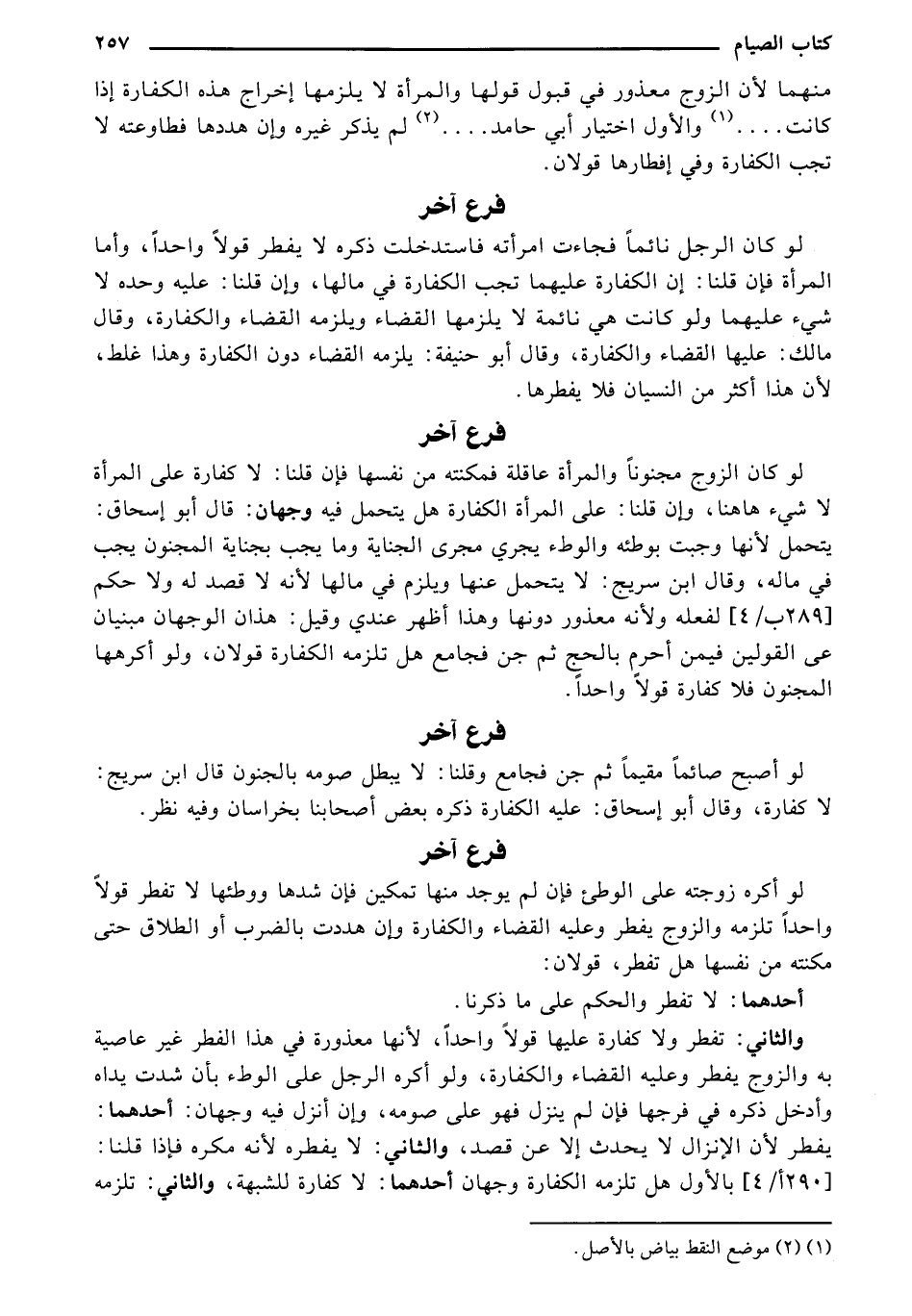 لو أصبح صائمًا مقيمًا ثم جن فجامع وقلنا: لا يبطل صومه بالجنون قال ابن سريج: لا كفارة، وقال أبو إسحاق: عليه الكفارة ذكره بعض أصحابنا بخراسان وفيه نظر.