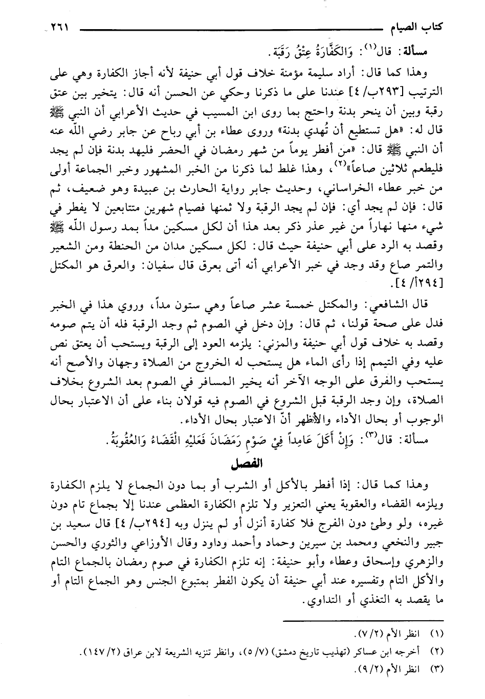مسالة: قال (¬3): وَنْ أَكَلَ عَامِدًا فِيْ صَوْمِ رَمَضَانَ فَعَليْهِ الْقَضَاءُ وَالعُقُوبَةُ.
