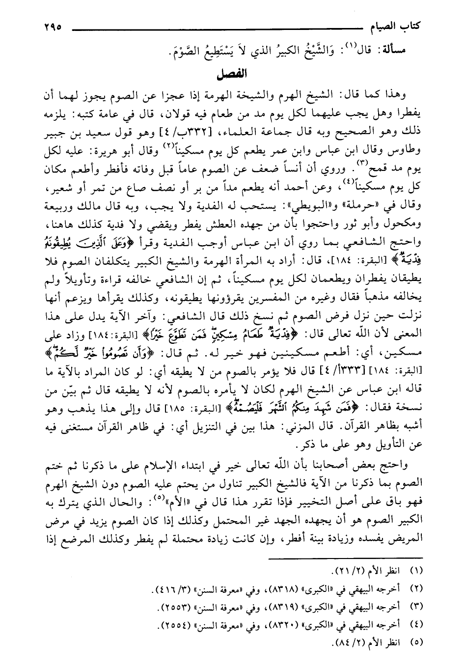 مسألة: قال (¬1): وَالشَّيْخُ الكبيرُ الذي لاَ يَسْتَطِيعُ الصَّوَّمَ.