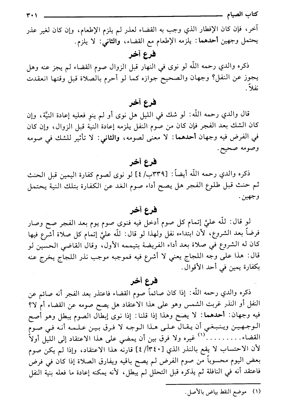 قال والدي رحمه الله: لو شك في الليل هل نوى أو لم ينو فعليه إعادة النيَّة، وإن كان الشك بعد الفجر فإن كان من صوم النفل يلزمه إعادة النية قبل الزوال، وإن كان في الفرض في وجهان أحدهما: لا معنى لصومه، والثاني: لا تأثير للشك في صومه وصومه صحيح.