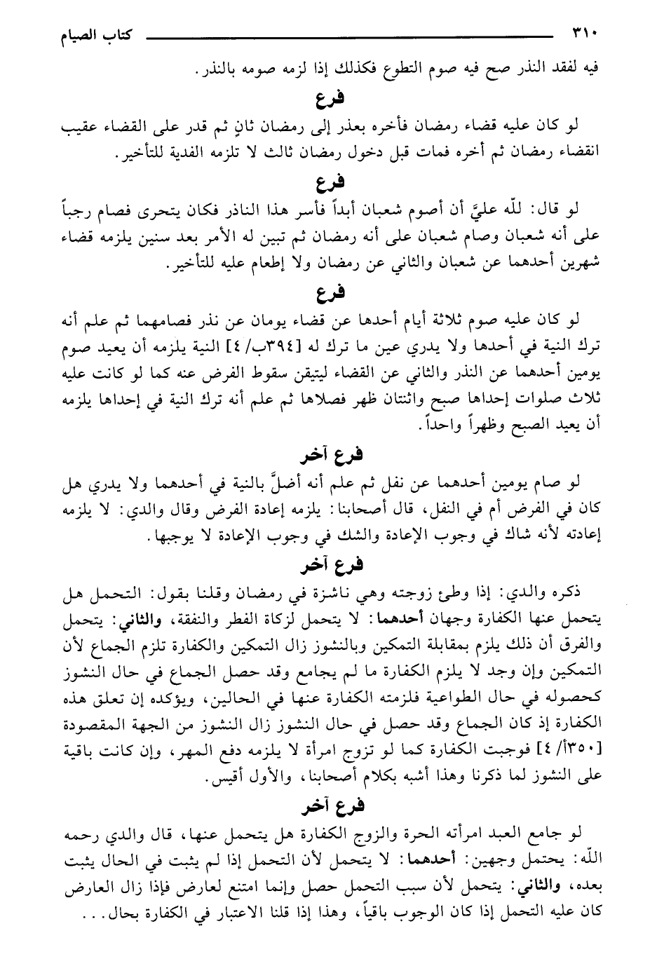 ذكره والدي: إذا وطئ زوجته وهي ناشزة في رمضان وقلنا بقول: التحمل هل يتحمل عنها الكفارة وجهان أحدهما: لا يتحمل لزكاة الفطر والنفقة، والثاني: يتحمل والفرق أن ذلك يلزم بمقابلة التمكين وبالنشوز زال التمكين والكفارة تلزم الجماع لأن التمكين وإن وجد لا يلزم الكفارة ما لم بجامع وقد حصل الجماع في حال النشوز كحصوله في حال الطواعية فلزمته الكفارة عنها في الحالين، ويؤكده إن تعلق هذه الكفارة غذ كان الجماع وقد حصل في حال النشوز زال النشوز من الجهة المقصودة [350 أ/ 4] فوجبت الكفارة كما لو تزوج امرأة لا يلزمه دفع المهر، وإن كانت باقية على النشوز لما ذكرنا وهذا أشبه بكلام أصحابنا، والأول أقيس.