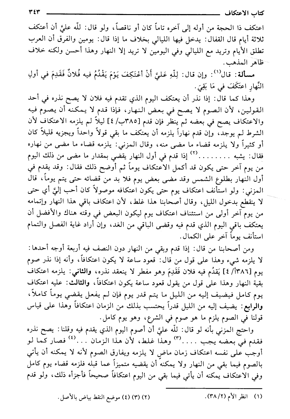 وهذا كما قال: إذا نذر أن يعتكف اليوم الذي تقدم فيه فلان لا يصح نذره في أحد القولين، لأن الصوم لا يصح في بعض النهار، فإذا قدم لا يمكنه أن يصوم فيه والاعتكاف يصح في بعضه ثم ينظر فإن قدم [385 ب/4] ليلًا لم يلزمه الاعتكاف لأن الشرط لم يوجد، وإن قدم نهارًا يلزمه أن يعتكف ما بقي قولًا واحدًا ويجزيه قليلًا كان أو كثيرًا ولا يلزمه قضاء ما مضي منه، وقال المزني: يلزمه قضاء ما مضى من نهاره فقال: يشبه ....... (¬2)، إذا قدم في أول النهار يقضي بمقدار ما مضى من ذلك اليوم من يوم آخر حتى يكون قد أكمل الاعتكاف يومًا ثم أوضح ذلك فقال: وقد يقدم في أول النهار بطلوع الشمس وقد مضي بعض يوم فلا بد من قضائه حتى يتم يومًا، قال المزني: ولو استأنف اعتكاف يوم حتى يكون اعتكافه موصولًا كان أحب إليَّ أي حتى لا ينقطع بدخول الليل، وقال أصحابنا هذا غلط، لأن اعتكاف باقي هذا النهار وإتمامه من يوم آخر أولى من استئناف اعتكاف يوم ليكون البعض في وقته هناك والأفضل أن يعتكف باقي اليوم الذي قدم فيه وقضى الباقي من الغد، وإن أراد غاية الفصل والتمام استأنف يومأ آخر على الكمال.
