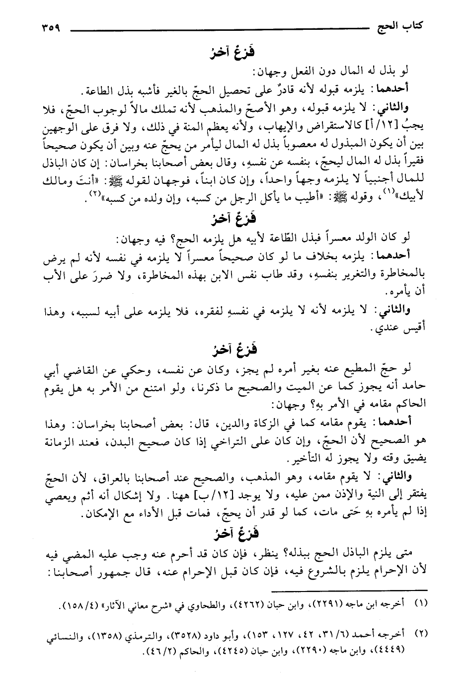 والثاني: لا يلزمه قبوله، وهو الأصحّ والمذهب لأنه تملك مالًا لوجوب الحجّ، فلا يحبُ [12/أ] كالاستقراض والإيهاب، ولأنه يعظم المنة في ذلك، ولا فرق على الوجهين بين أن يكون المبذول له معصوبًا بذل له المال ليأمر من يحجّ عنه وبين أن يكون صحيحًا فقيرًا بذل له المال ليحجّ، بنفسه عن نفسهِ، وقال بعض أصحابنا بخراسان: إن كان الباذل للمال أجنبيًا لا يلزمه وجهًا واحدًا، وإن كان ابنًا، فوجهان لقوله (صلي الله عليه وسلم):" أنتَ ومالك لأبيك" (¬1)، وقوله (صلي الله عليه وسلم): أطيب ما يأكل الرجل من كسبه، وإن ولده من كسبه" (¬2).