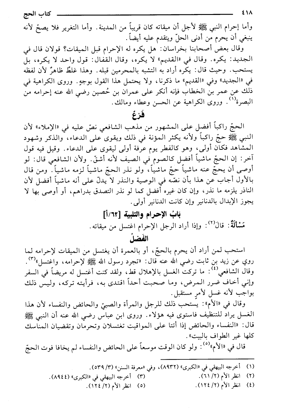 (¬5) انظر الأم (2/ 124).
