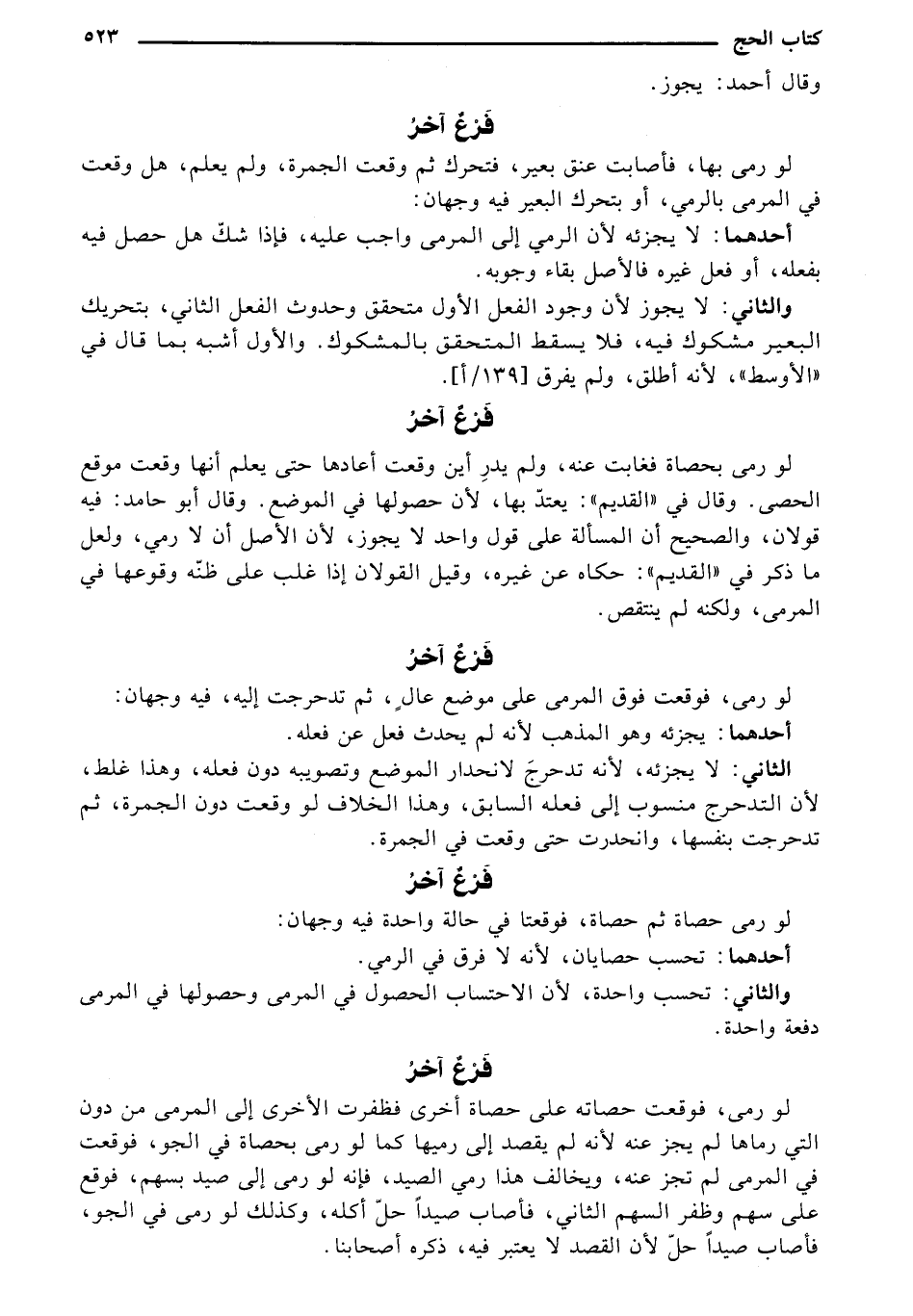 الثاني: لا يجزئه, لأنه تدحرجَ لانحدار الموضع وتصويبه دون فعله, وهذا غلط, لأن التدحرج منسوب إلى فعله السابق, وهذا الخلاف لو وقعت دون الجمرة, ثم تدحرجت بنفسها, وانحدرت حتى وقعت في الجمرة.