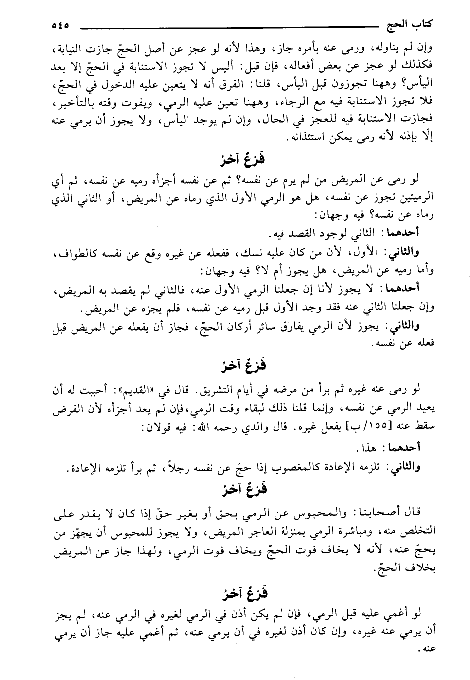 والثاني: يجوز لأن الرمي يفارق سائر أركان الحج، فجاز أن يفعله عن المريض قبل فعله عن نفسه.