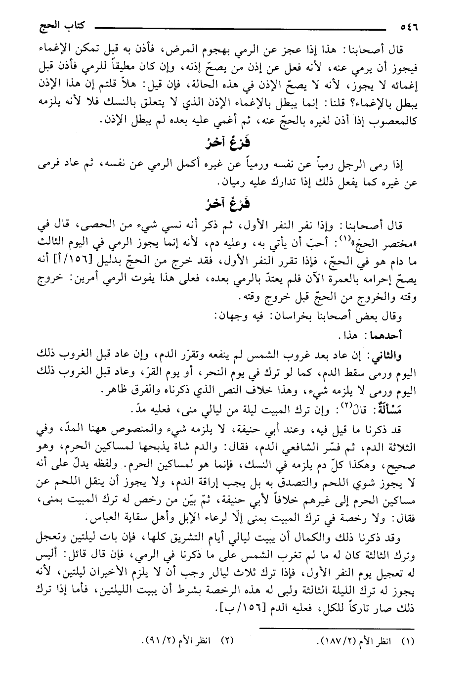 قد ذكرنا ما قيل فيه، وعند أبي حنيفة، لا يلزمه شيء والمنصوص ههنا المد، وفي الثلاثة الدم، ثم فسر الشافعي الدم، فقال: والدم شاة يذبحها لمساكين الحرم، وهو صحيح، وهكذا كل دم يلزمه في النسك، فإنما هو لمساكين الحرم. ولفظه يدل علي أنه لا يجوز شوي اللحم والتصدق به بل يجب إراقة الدم، ولا يجوز أن ينقل اللحم عن مساكين الحرم إلي غيرهم خلافًا لأبي حنيفة، ثم بين من رخص له ترك المبيت بمنى، فقال: ولا رخصة في ترك المبيت بمنى إلا لرعاء الإبل وأهل سقاية العباس.