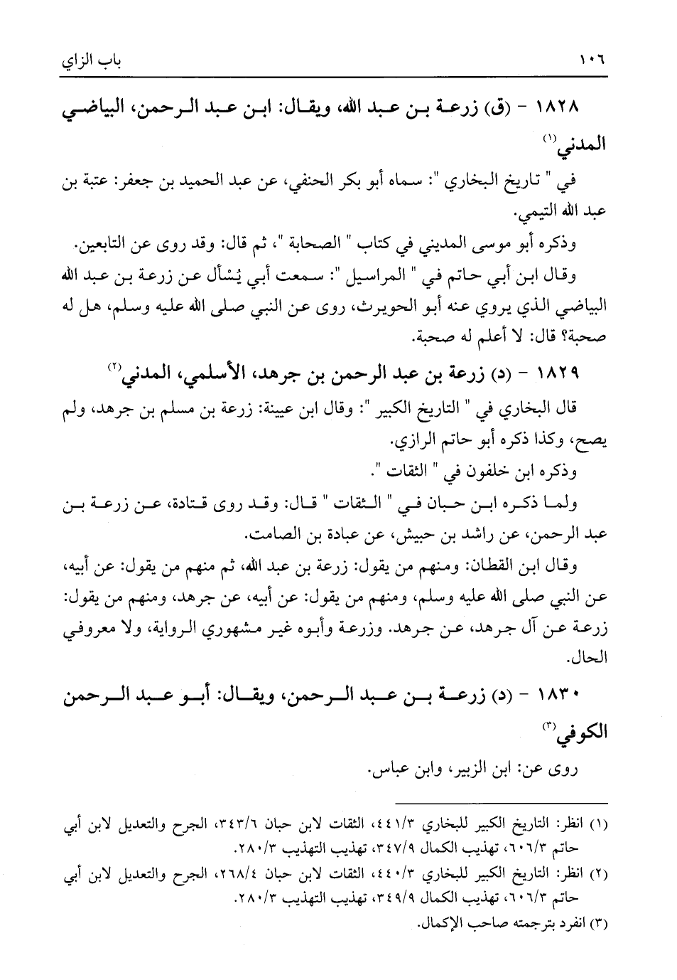 ١٨٣٠ - (د) زرعة بن عبد الرحمن، ويقال: أبو عبد الرحمن الكوفي (¬٣)