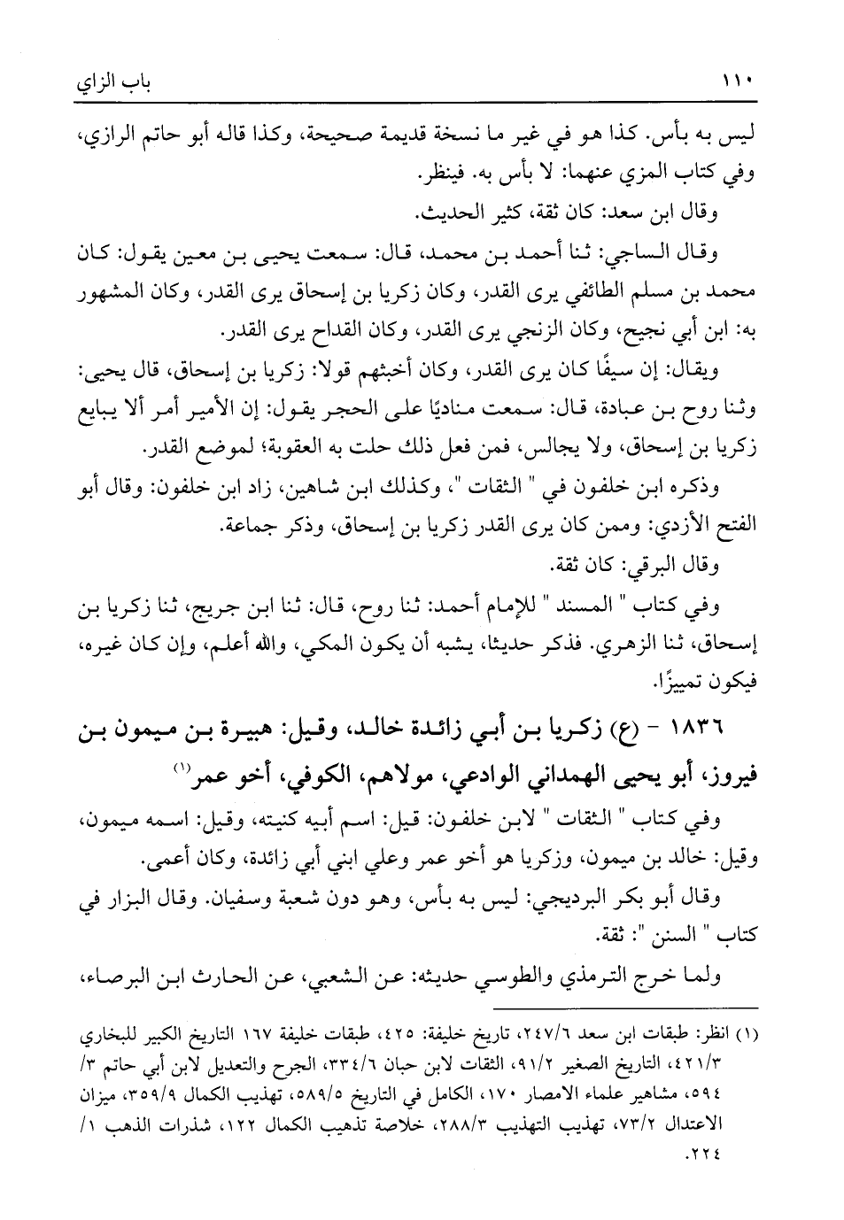 ١٨٣٦ - (ع) زكريا بن أبي زائدة خالد، وقيل: هبيرة بن ميمون بن فيروز، أبو يحيى الهمداني الوادعي، مولاهم، الكوفي، أخو عمر (¬١)