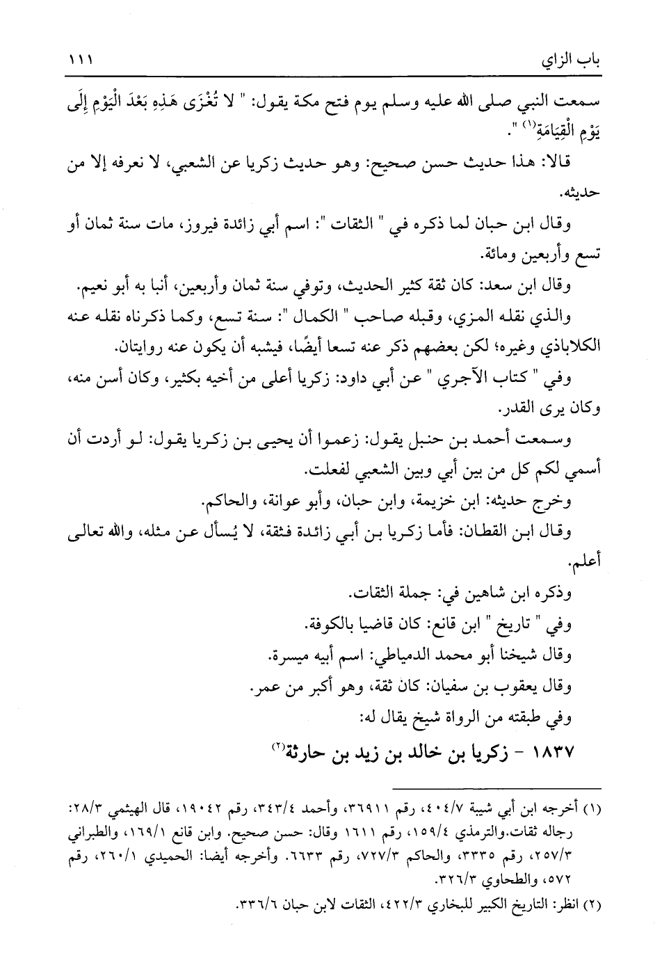 ١٨٣٧ - زكريا بن خالد بن زيد بن حارثة (¬٢)