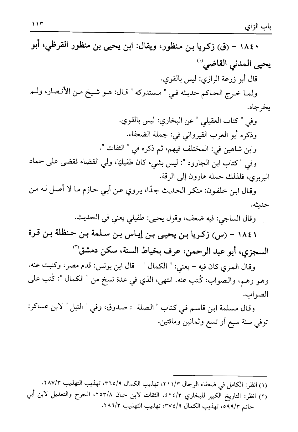 ١٨٤١ - (س) زكريا بن يحيى بن إياس بن سلمة بن حنظلة بن قرة السجزي، أبو عبد الرحمن، عرف بخياط السنة، سكن دمشق (¬٢)