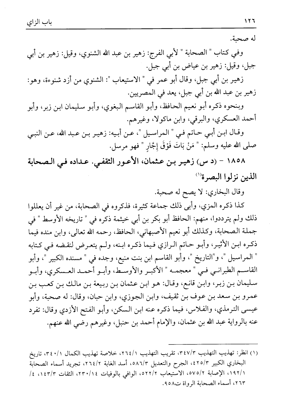 ١٨٥٨ - (د س) زهير بن عثمان، الأعور الثقفي. عداده في الصحابة الذين نزلوا البصرة (¬١)