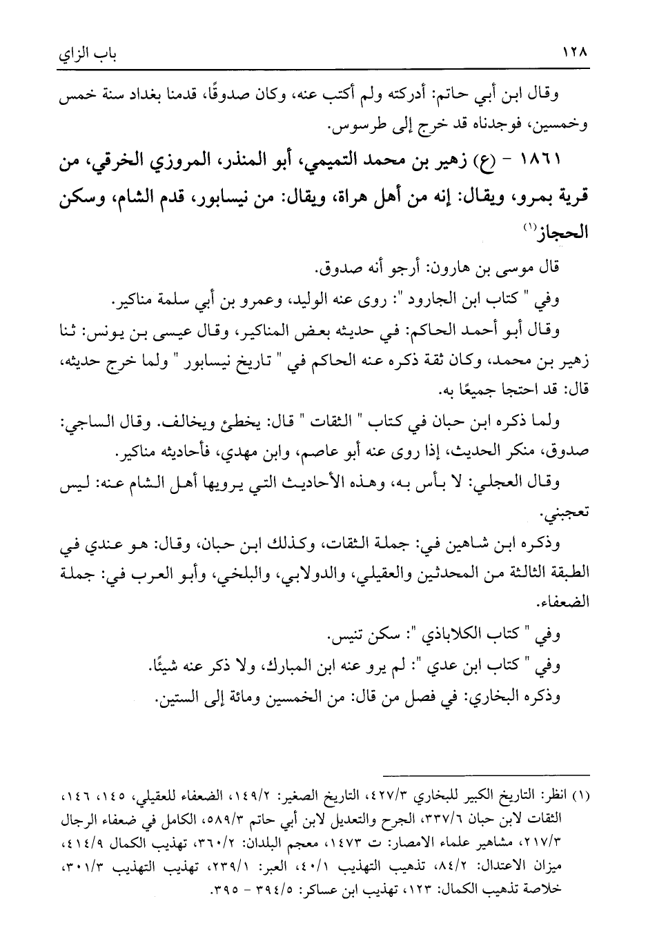 ١٨٦١ - (ع) زهير بن محمد التميمي، أبو المنذر، المروزي الخرقي، من قرية بمرو، ويقال: إنه من أهل هراة، ويقال: من نيسابور، قدم الشام، وسكن الحجاز (¬١)