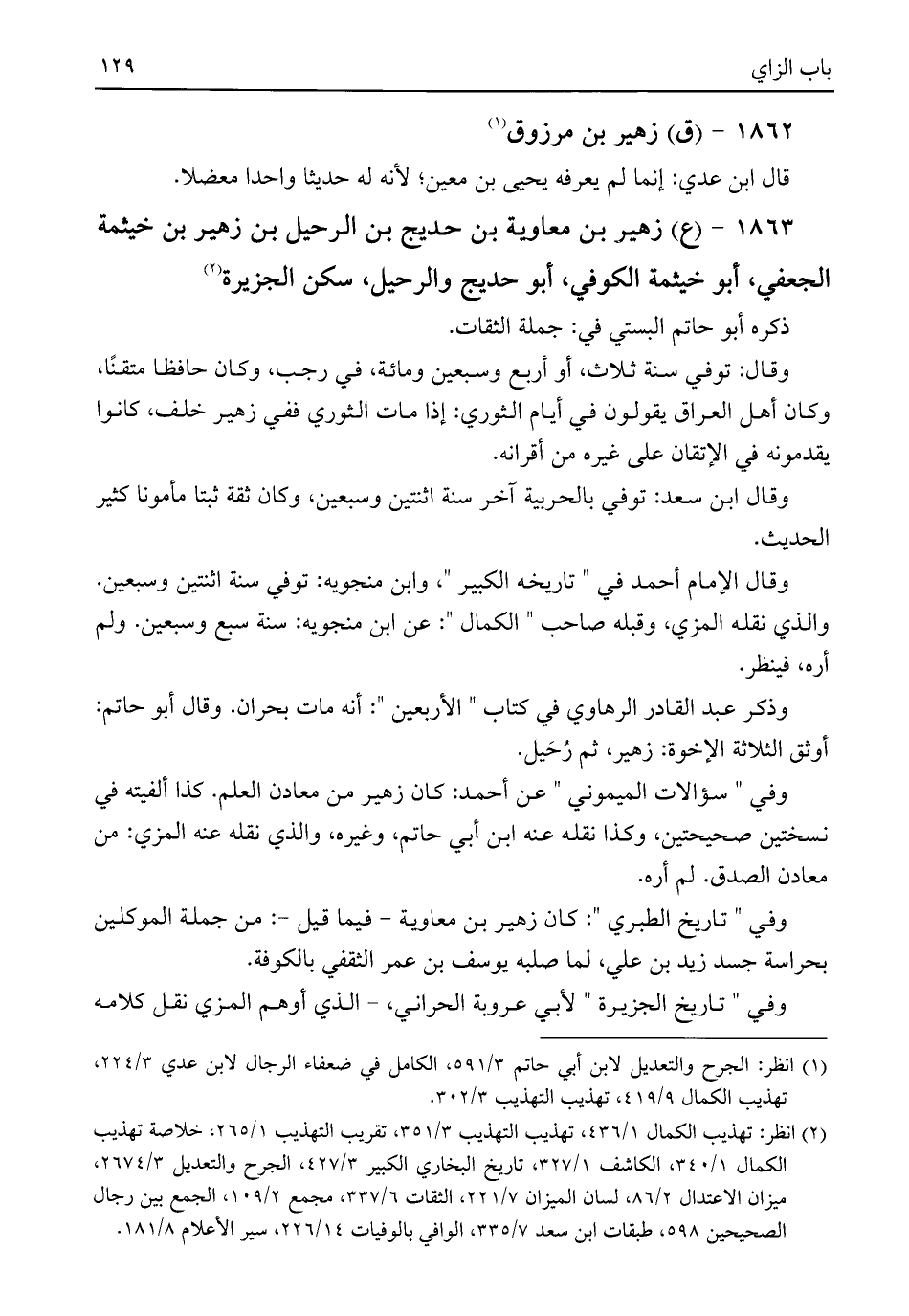 ١٨٦٣ - (ع) زهير بن معاوية بن حديج بن الرحيل بن زهير بن خيثمة الجعفي، أبو خيثمة الكوفي، أبو حديج والرحيل، سكن الجزيرة (¬٢)