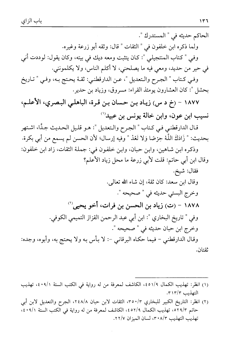 ١٨٧٧ - (خ د س) زياد بن حسان بن قرة، الباهلي البصري، الأعلم، نسيب ابن عون، وابن خالة يونس بن عبيد (¬١)