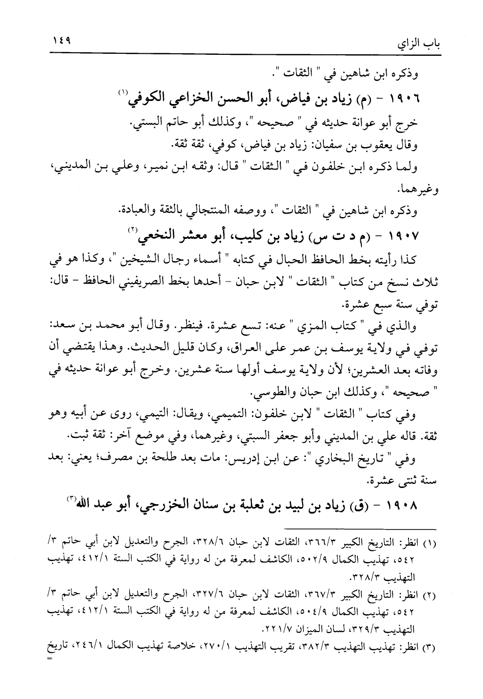 (¬١) انظر: التاريخ الكبير ٣/ ٣٦٦، الثقات لابن حبان ٦/ ٣٢٨، الجرح والتعديل لابن أبي حاتم ٣/ ٥٤٢، تهذيب الكمال ٩/ ٥٠٢، الكاشف لمعرفة من له رواية في الكتب الستة ١/ ٤١٢، تهذيب التهذيب ٣/ ٣٢٨.