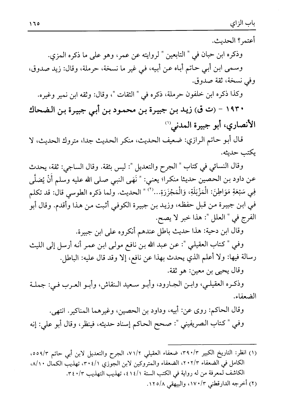١٩٣٠ - (ت ق) زيد بن جبيرة بن محمود بن أبي جبيرة بن الضحاك الأنصاري، أبو جبيرة المدني (¬١)