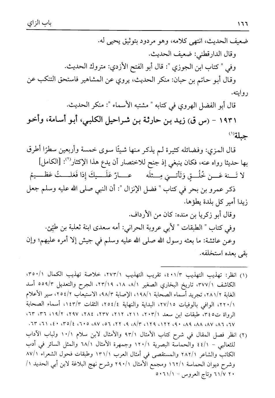 ١٩٣١ - (س ق) زيد بن حارثة بن شراحيل الكلبي، أبو أسامة، وأخو جبلة (¬١)