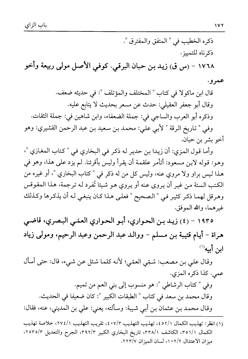 ١٧٦٨ - [*] (س ق) زيد بن حبان البرقي. كوفي الأصل مولى ربيعة وأخو عمرو.