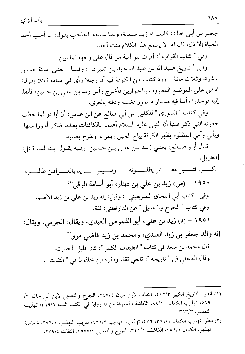 ١٩٥٠ - (س) زيد بن علي بن دينار، أبو أسامة الرقى (¬١)