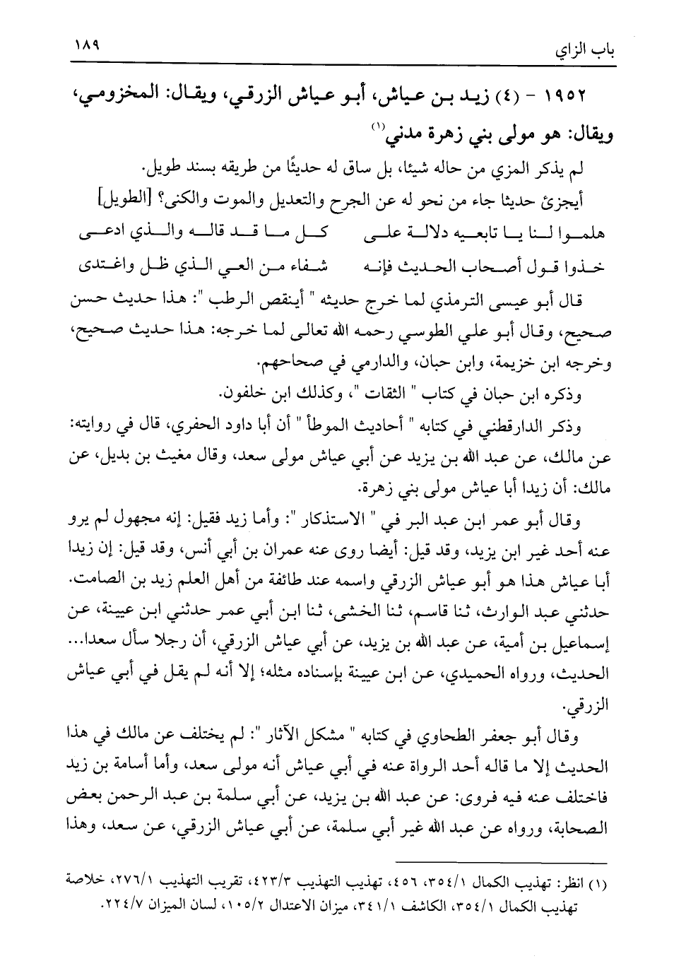 ١٩٥٢ - (٤) زيد بن عياش، أبو عياش الزرقي، ويقال: المخزومي، ويقال: هو مولى بني زهرة مدني (¬١)
